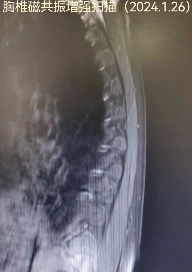 白某某,女性,73岁,2024年01月09日入院。主诉:进展性双下肢无力15天现病史:15天前(12月26日7:00)无明显诱因突发双下肢无力,可缓慢行走,(12月26日9:00)渐进行性加重,双下肢抬离床面困难,不能行走,伴双下肢感觉障碍,小便困难及大便失禁,持续性,无头痛、眩晕、恶心、呕吐,无意识丧失、肢体抽搐、口吐白沫、双眼凝视,偶有口角流涎,无言语含糊、饮水呛咳、吞咽困难。立即就诊于当地县人民医院,因起病急,症状重,病情进展快,双下肢感觉障碍,尿便障碍,短时间内诊断困难,当天转诊于某大学附属医院神经外科,按双下肢无力待查:胸髓缺血诊治后好转,双下肢较前有力,可借助外物缓慢挪步,行走不稳